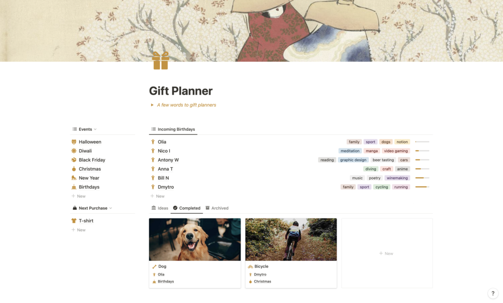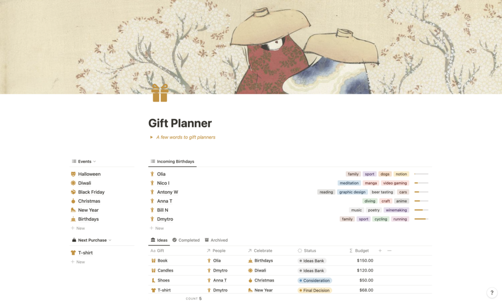Looking for an easier way to manage your gift-giving? Look no further than Gift Planner, the Notion template that helps you organize and track your gifts for any occasion.